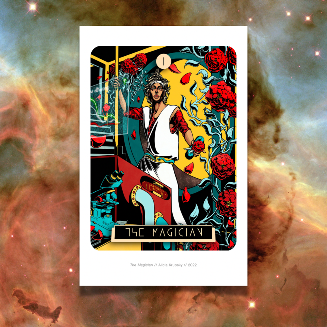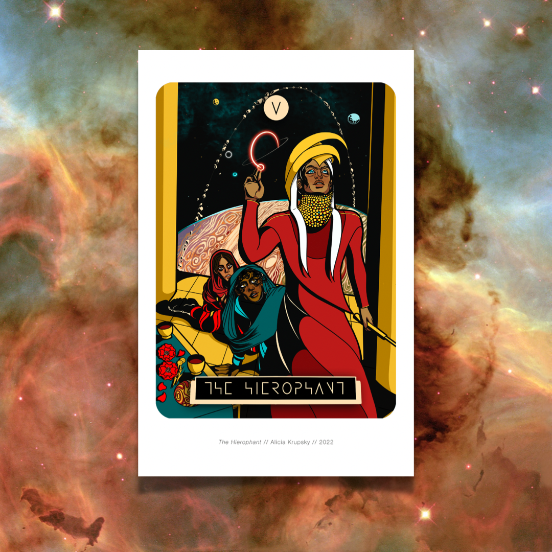 11 x 17 prints of cards from the Spacefarer tarot series.